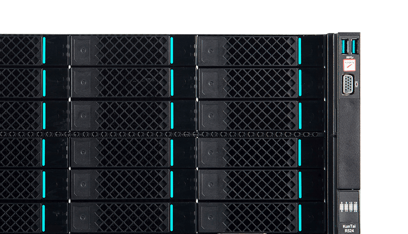 KunTai R524 存储型服务器是yth游艇会数码基于鲲鹏处理器推出的新一代 ARM数据中心服务器。。。。主要面向存储业务,,,,具有海量存储、、、高性能、、、、低功耗以及易扩展的特点,,适合为大数据分析、、软件定义存 储等应用场景的工作负载进行髙效加速。。。
